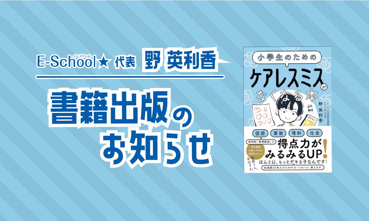 この度、E-School☆代表の野英利香先生が、長年の指導経験を活かした書籍を出版されましたので、皆様にご紹介させていただきます!