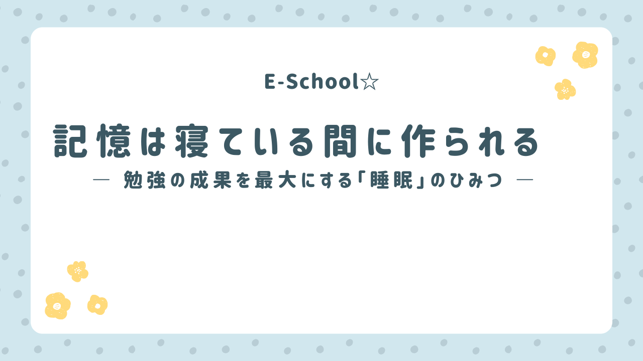今日は、「なぜ睡眠が勉強にとって大事なのか」を分かりやすくお話しします。